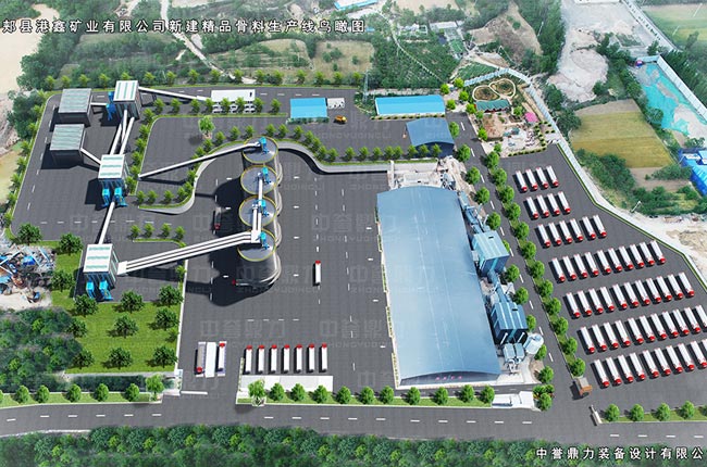 【設備配置】:中譽鼎力DLPCZ重型錘式反擊破碎機、DLPC整形式破碎機、配備DLYKZ系列振動篩、脈沖袋式除塵器等設備,配備礦山智能管理系統